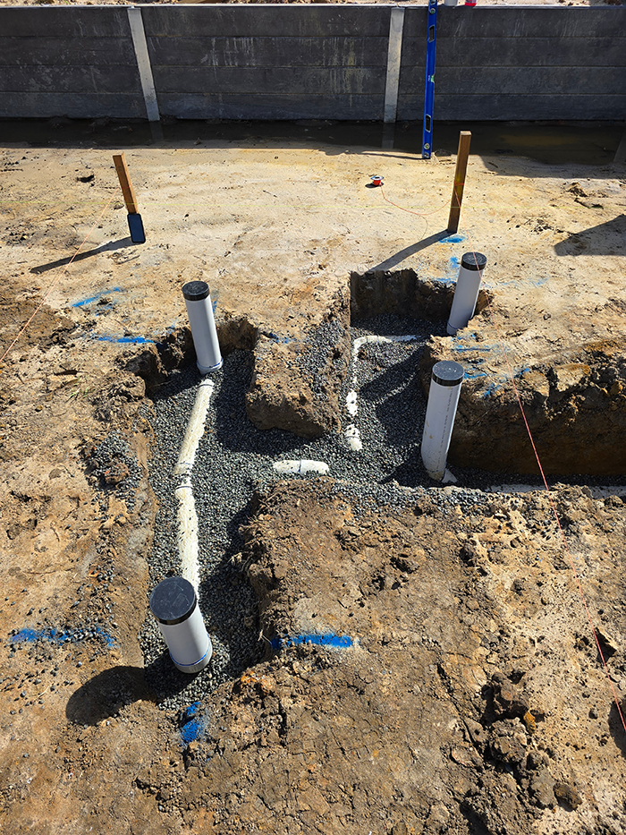 >Installation of Stormwater pits, agg drains & additional downpipes.